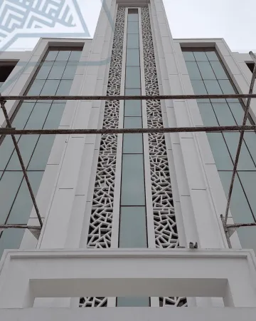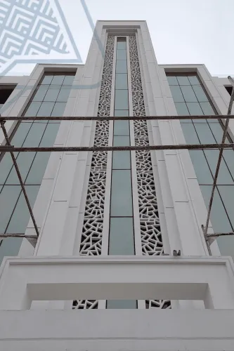 قمنا في هذا المشروع بالإكساء الكامل للواجهات باستعمال ألواح مشكلة حسب التصميم وبإدخال خطوط الإنارة ضمن القطع للحصول على مظهر رائع وعصري.